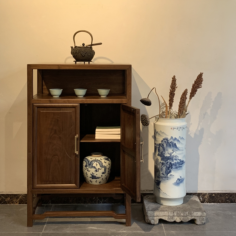 產(chǎn)品風(fēng)格: 新中式產(chǎn)品型號: HJCBG--013產(chǎn)品主材: 北美黑胡桃木/北方落梁老榆木產(chǎn)品尺寸: L70cm x W 38cm x H 108cm(可定制)