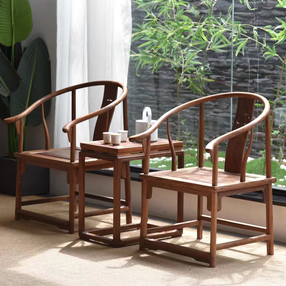 產(chǎn)品風(fēng)格: 新中式產(chǎn)品型號: xxy--9865產(chǎn)品主材: 北方老榆木/北美進(jìn)口FAS級黑胡桃木產(chǎn)品尺寸: 椅子:L 60x W 50 x H 88cm 茶幾L 50xW35xH 60cm