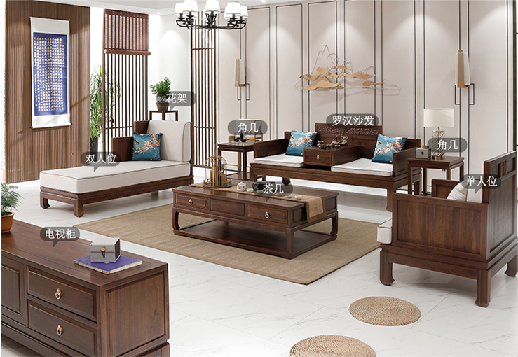 產(chǎn)品風(fēng)格: 新中式產(chǎn)品型號: SF--011產(chǎn)品主材: 北方落梁老榆木/北美進(jìn)口黑胡桃木產(chǎn)品尺寸: 羅漢床:210x80x92cm,貴妃位:180x80x96cm,單人位:80x80x96cm,茶幾:140x80x45cm,角幾:50x50x60cm,花幾:35x35x110cm