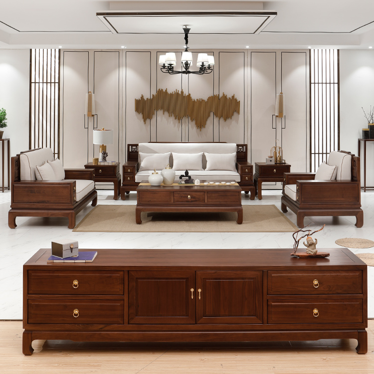 產(chǎn)品風(fēng)格: 新中式產(chǎn)品型號: SF-013產(chǎn)品主材: 北方落梁老榆木/北美進(jìn)口黑胡桃木產(chǎn)品尺寸: 三人位:210x80x96cm,單人位:160x80x96cm,角幾:50x50x60