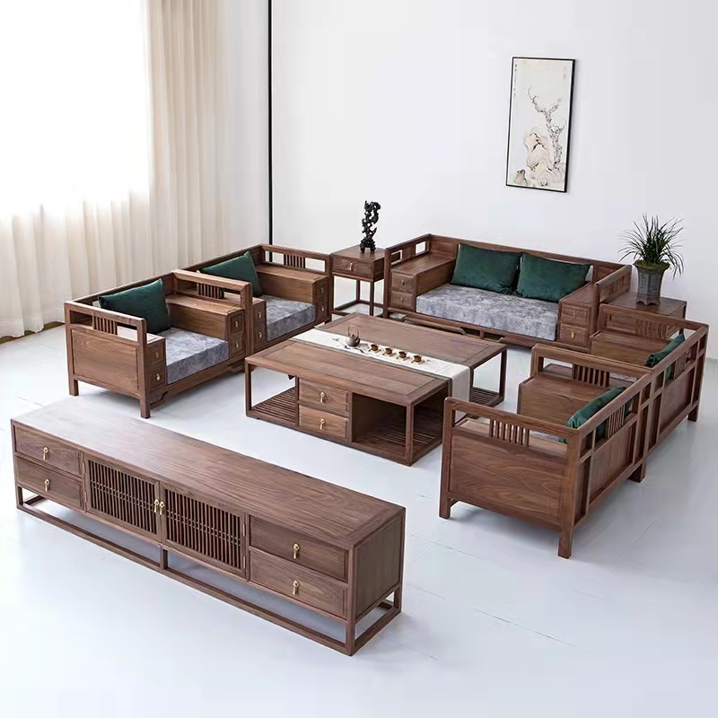產(chǎn)品風(fēng)格: 新中式產(chǎn)品型號: SF-108產(chǎn)品主材: 北美進(jìn)口白蠟木 / 北美進(jìn)口黑胡桃木產(chǎn)品尺寸: 3人位 L 208 x W 80 x H75CM ,單人位 L 118 x W 80 x H75 cm 茶幾 L 140 x W120 x H48 cm