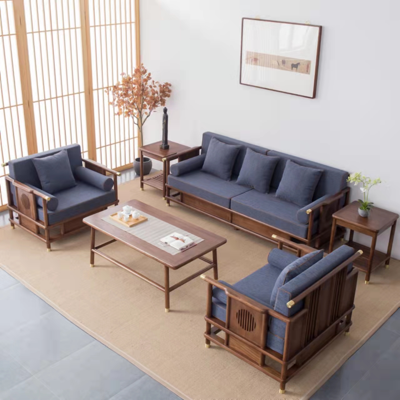 產(chǎn)品風(fēng)格: 新中式產(chǎn)品型號: SF-98產(chǎn)品主材: 北美進(jìn)口白蠟木 / 北美進(jìn)口黑胡桃木產(chǎn)品尺寸: 3人位 L 208 x W 80 x H78CM ,雙人位 L 168 x W 80 x H78 cm 單人位 L 102 x W 80 x H78 cm 茶幾 L 138 x W78 x H48 cm