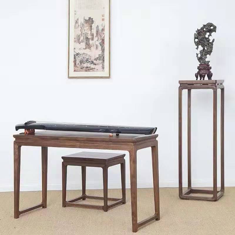 產(chǎn)品風(fēng)格: 新中式產(chǎn)品型號: HJQD--0018產(chǎn)品主材: 北美進(jìn)口黑胡桃木/北方落梁老榆木產(chǎn)品尺寸: 琴桌 L110cm x W 42cm x H 68cm / 琴凳 L 45cm x W 35cm x H 45cm (可定制)
